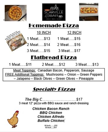 Come on over to Scarville for great drinks, pizza, flatbread pizza and brisket!